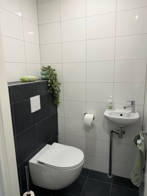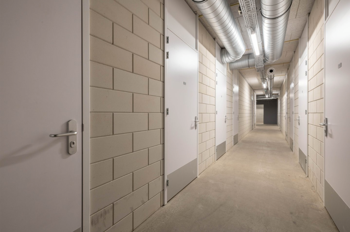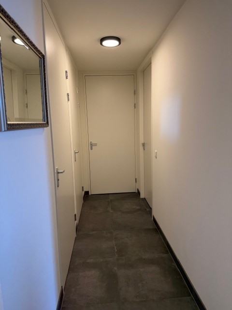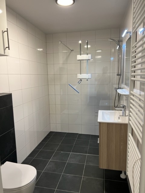 Naast de keuken bevindt zich een praktische berging, perfect ingericht voor het opbergen van je spullen en uitgerust met aansluitingen voor je wasmachine en droger. De moderne badkamer is uitgerust met een wastafel met meubel en een inloopdouche.