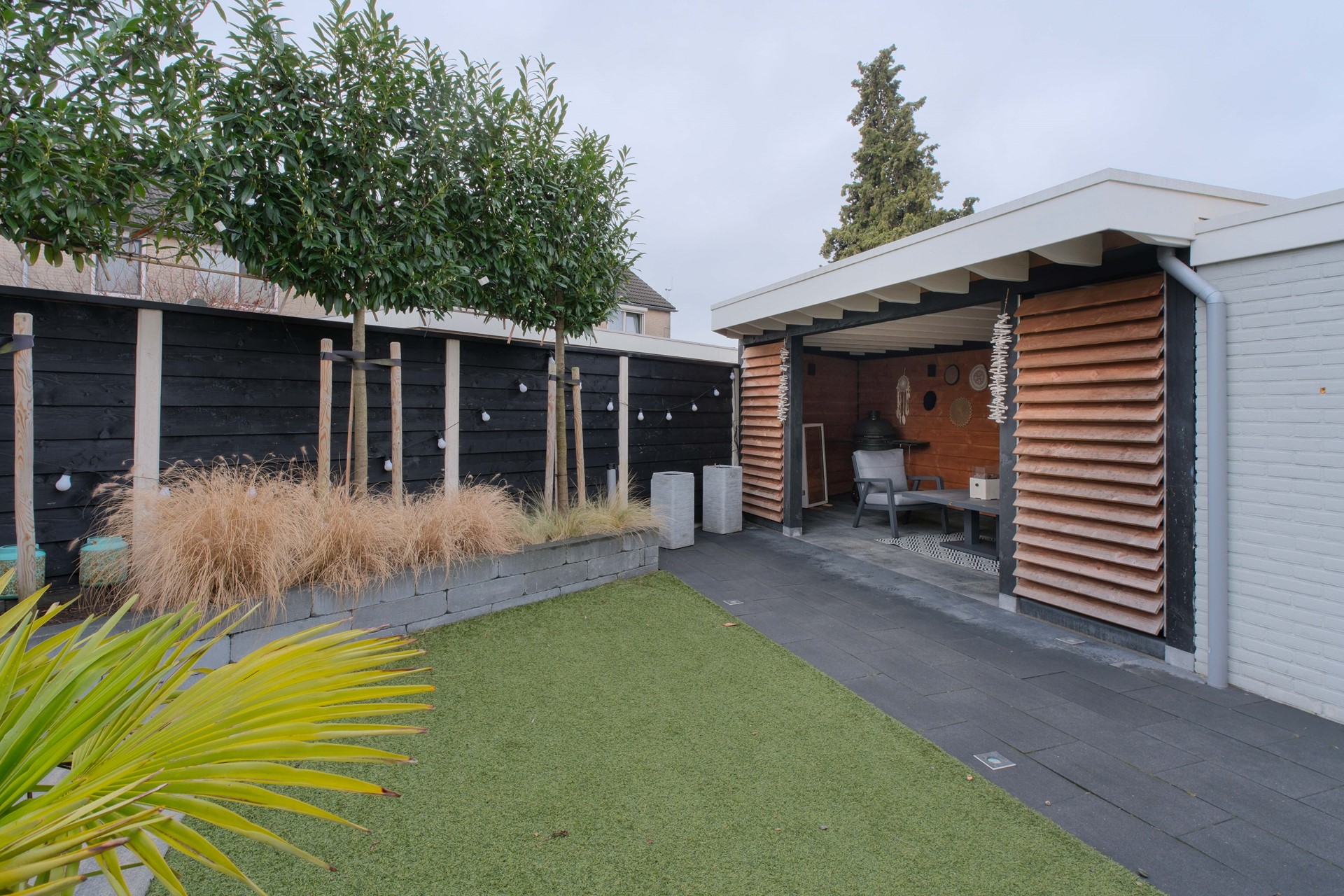 - Houten overkapping in achtertuin
