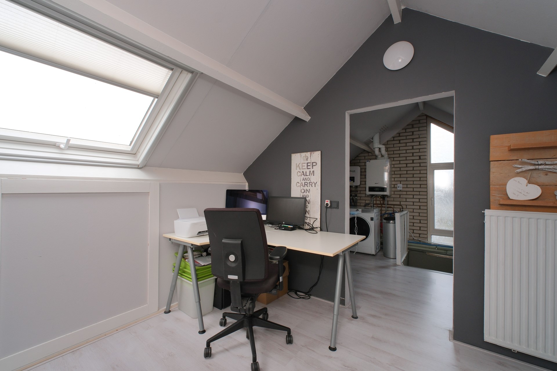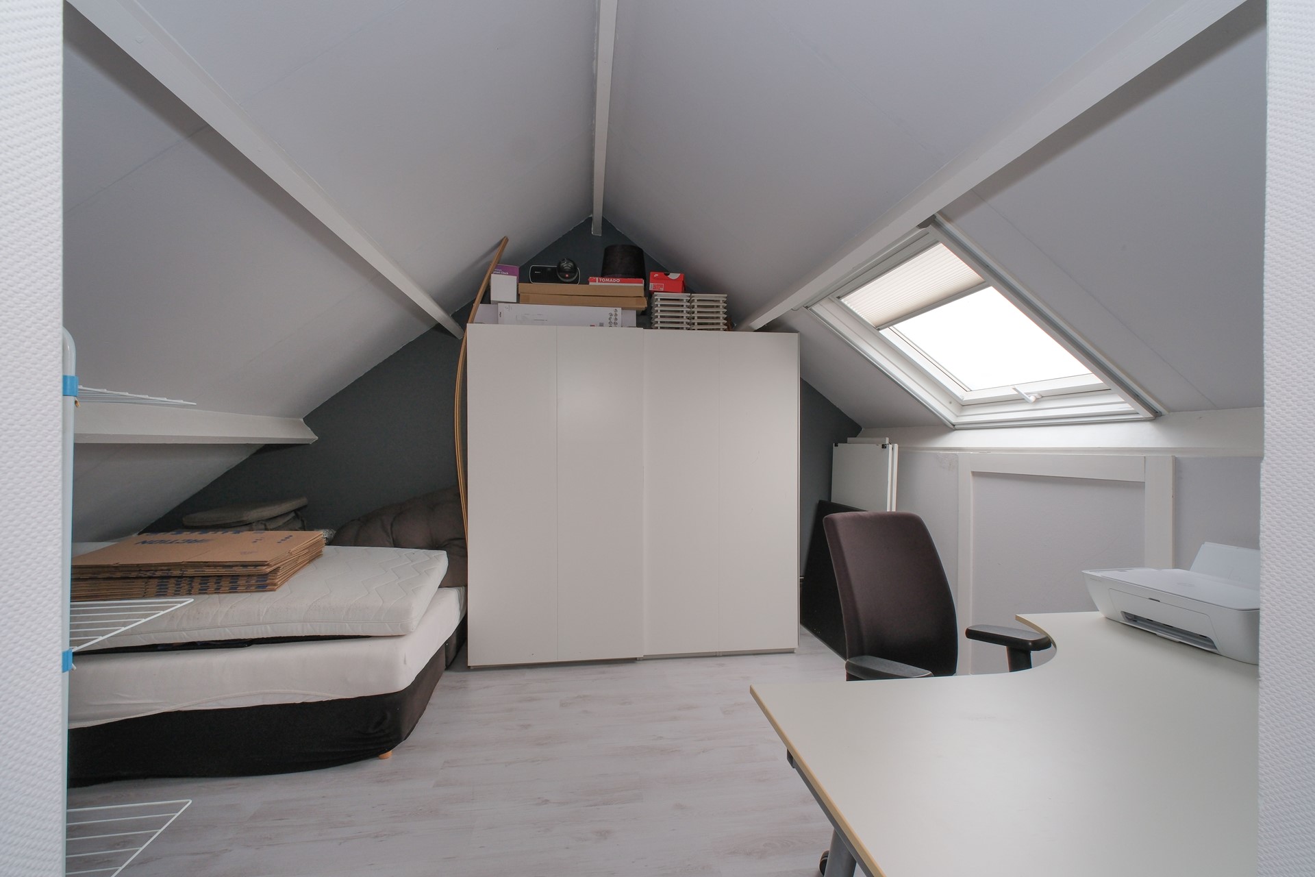 Tweede verdieping: Via een vaste trap bereik je de verrassend ruime zolderverdieping. Hier is een extra slaapkamer gerealiseerd, ideaal voor grotere gezinnen, logees of als thuiswerkplekken. Daarnaast is er een handige bergruimte met opstelplaats voor de CV-ketel en wasmachine-aansluiting.