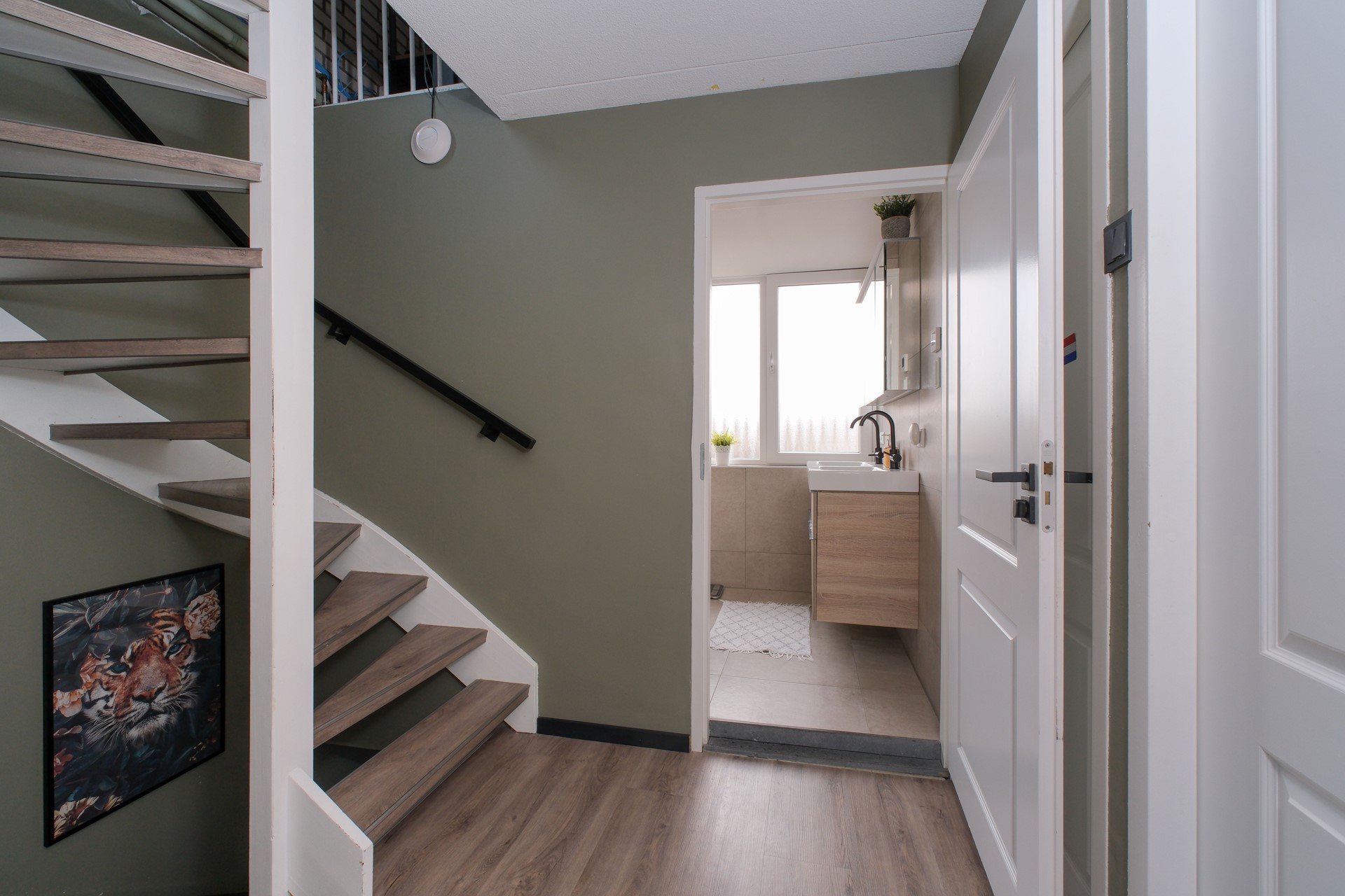 Eerste verdieping: Op de eerste verdieping bevinden zich drie ruime slaapkamers. De volledige elektrische installatie is in 2019 vernieuwd. In alle slaapkamers zijn aansluitpunten voor vast internet aanwezig. De badkamer is in 2021 volledig vernieuwd en beschikt over onder andere vloerverwarming, een design radiator, inloopdouche, wc en wastafel.